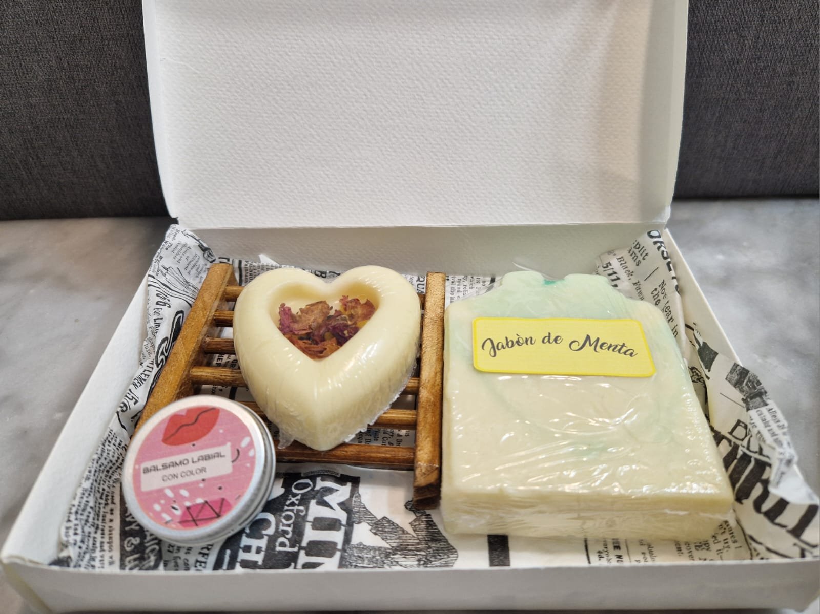 Jabón a elegir+ manteca solida+ bálsamo labial+ jabonera